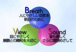 KYOWAKAKO 将 BVS(呼吸、视野、声音)视为组成人类生活品质的环境因素。我们认为新世纪的环保理念可以引用BVS进行总结。具体来说,“在实现空气净化的同时,我们将通过美化设备外观、降低设备运行噪音的方式尽可能地去改善设备与环境的感官协调。”这种思维方式将支持我们始终如一地开展各种客户端活动。
